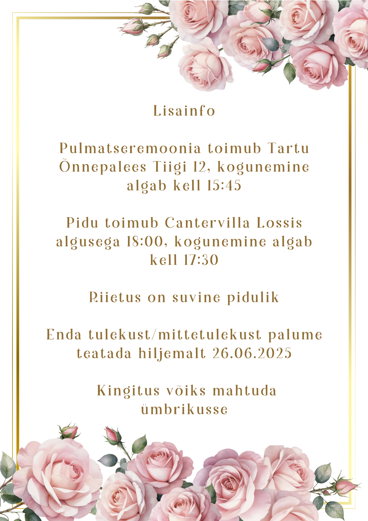 - Kutse mõõt: 12 × 17 cm