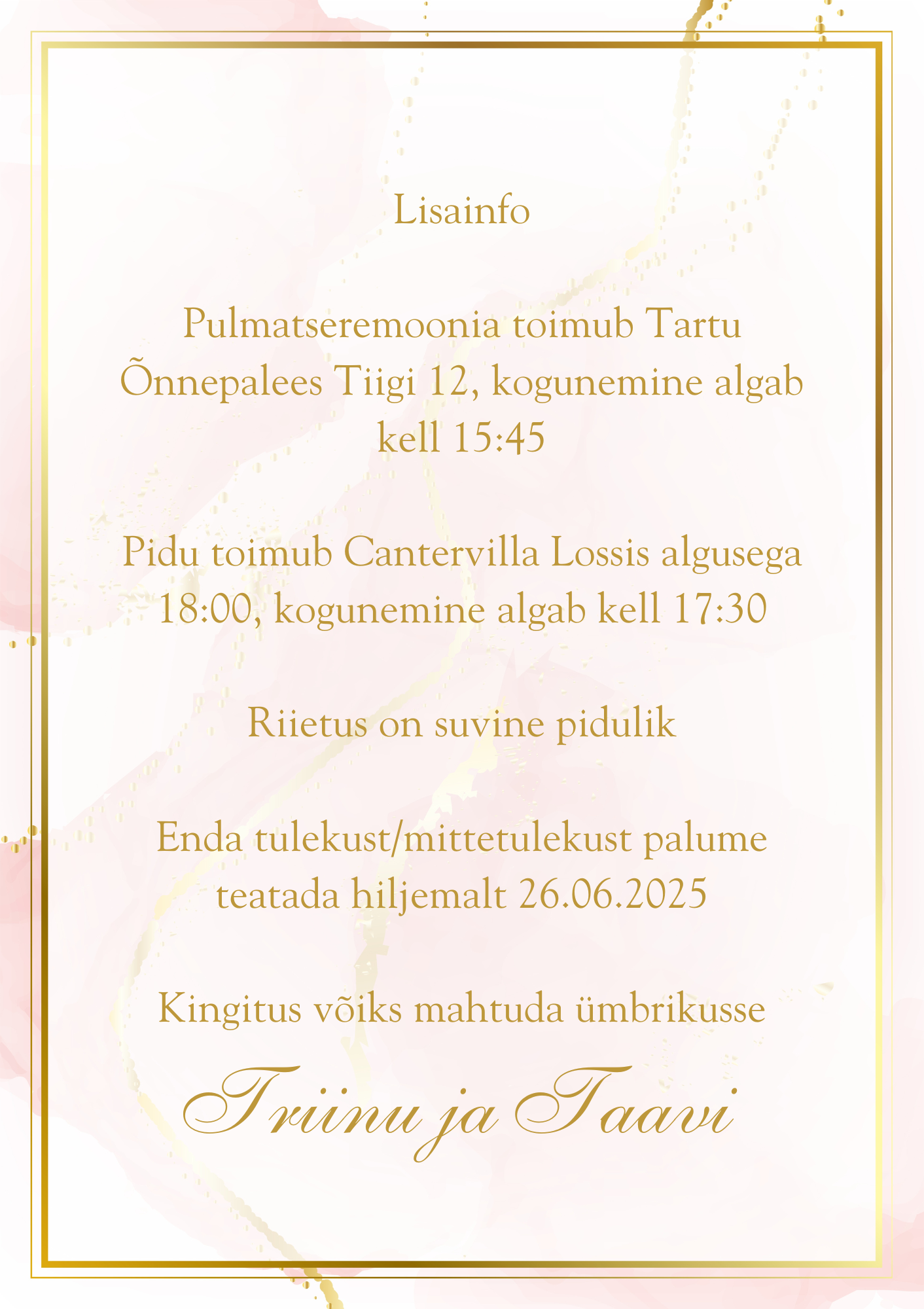 Lisaks pulmakutsetele on võimalik tellida samas stiilis: