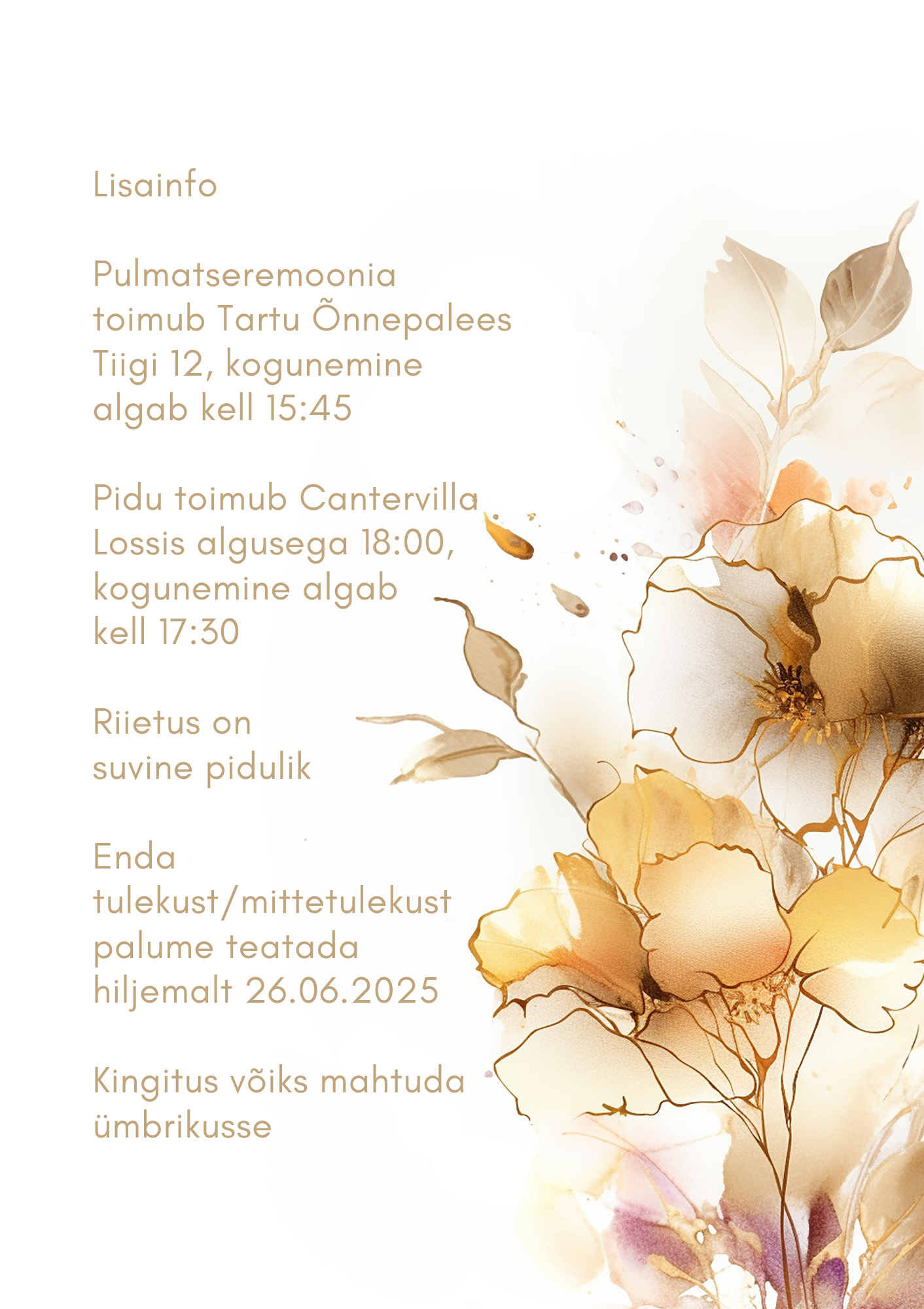 Iga pulmakutse valmib personaalselt teie jaoks. Lisaks pulmakutsetele on võimalik tellida samas stiilis: