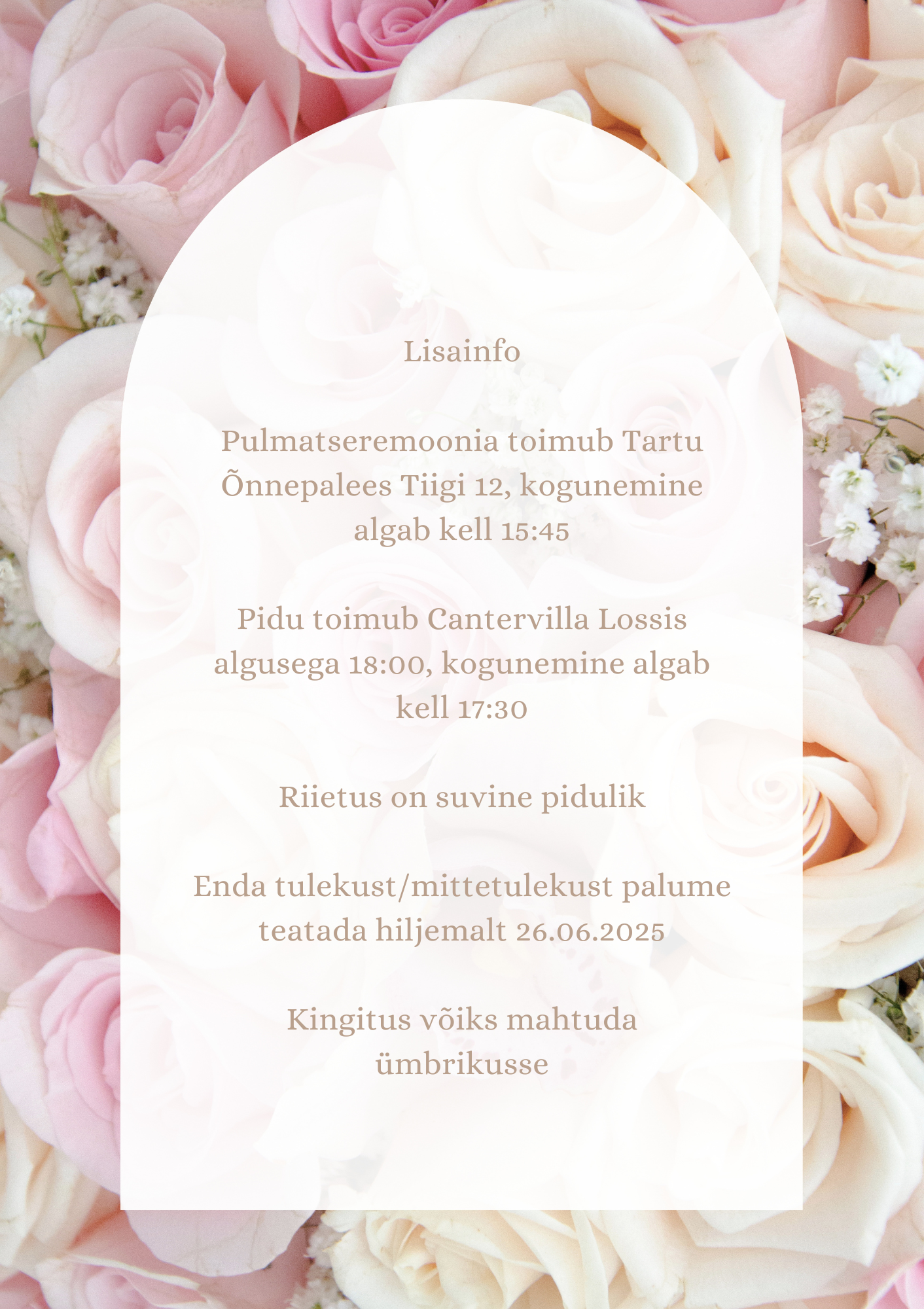 Iga pulmakutse valmib personaalselt teie jaoks. Lisaks pulmakutsetele on võimalik tellida samas stiilis: