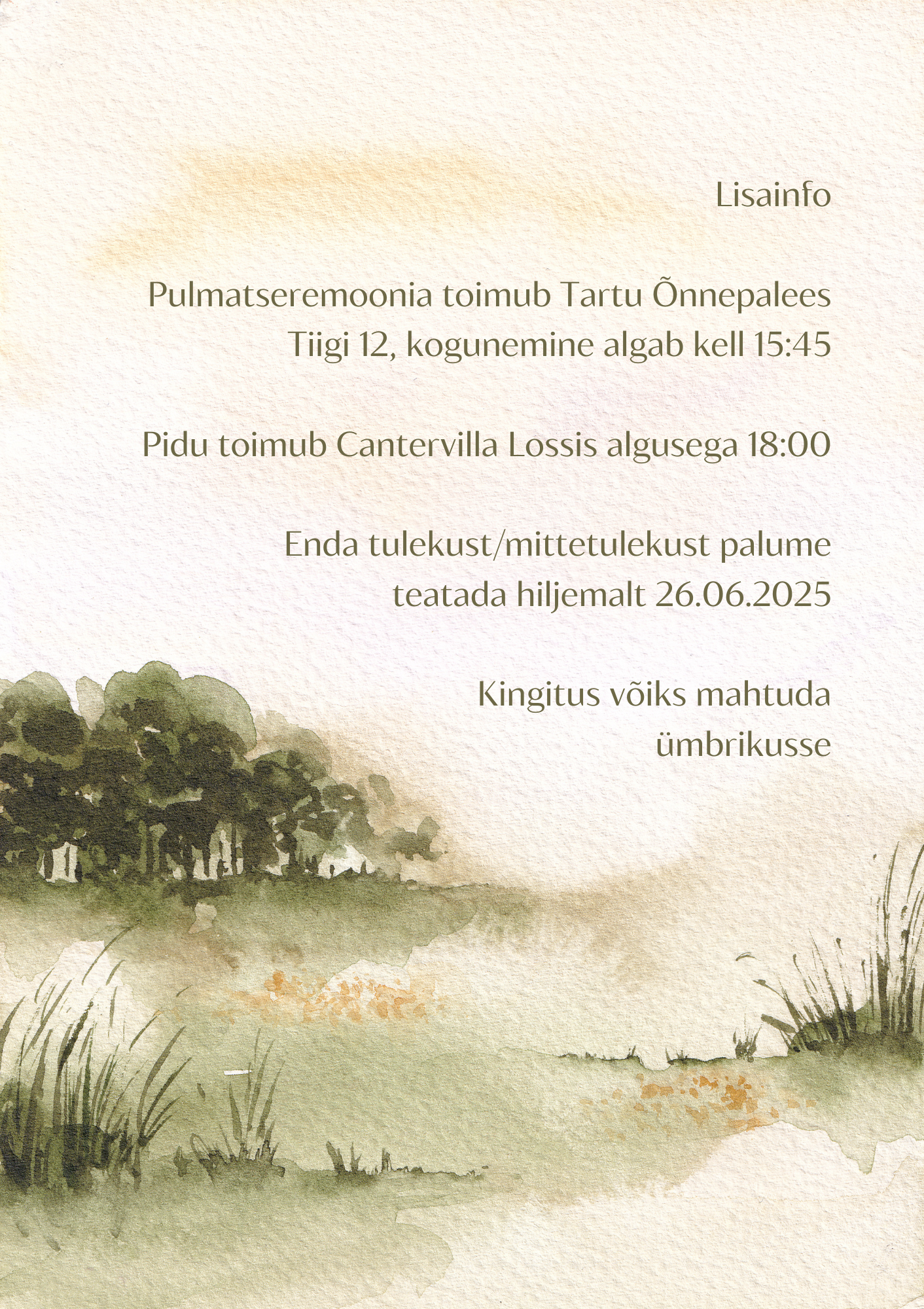 Lisaks pulmakutsetele on võimalik tellida samas stiilis: