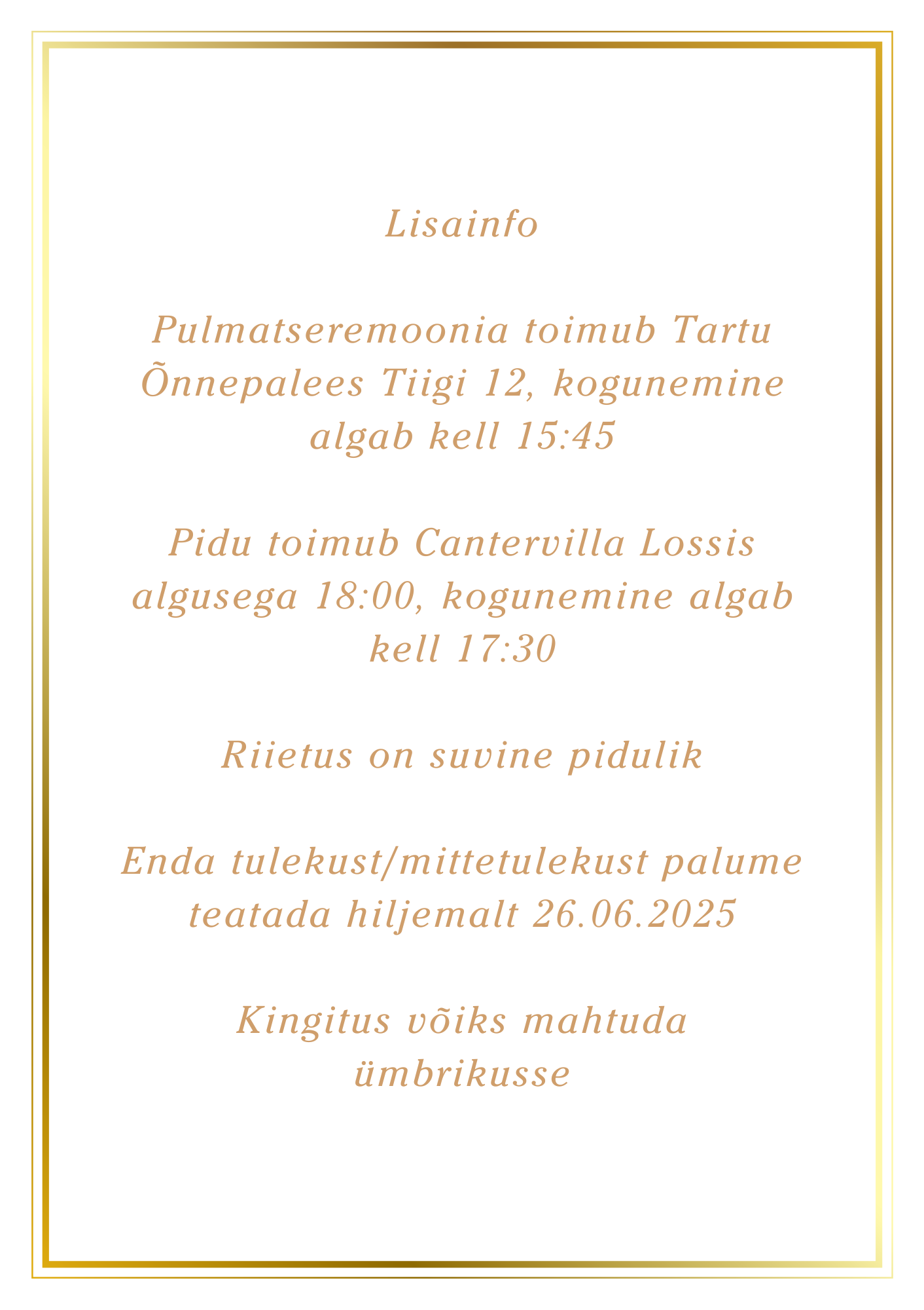 - Teksti paigutust, kirjastiili ja värve saab kohandada vastavalt teie soovidele.