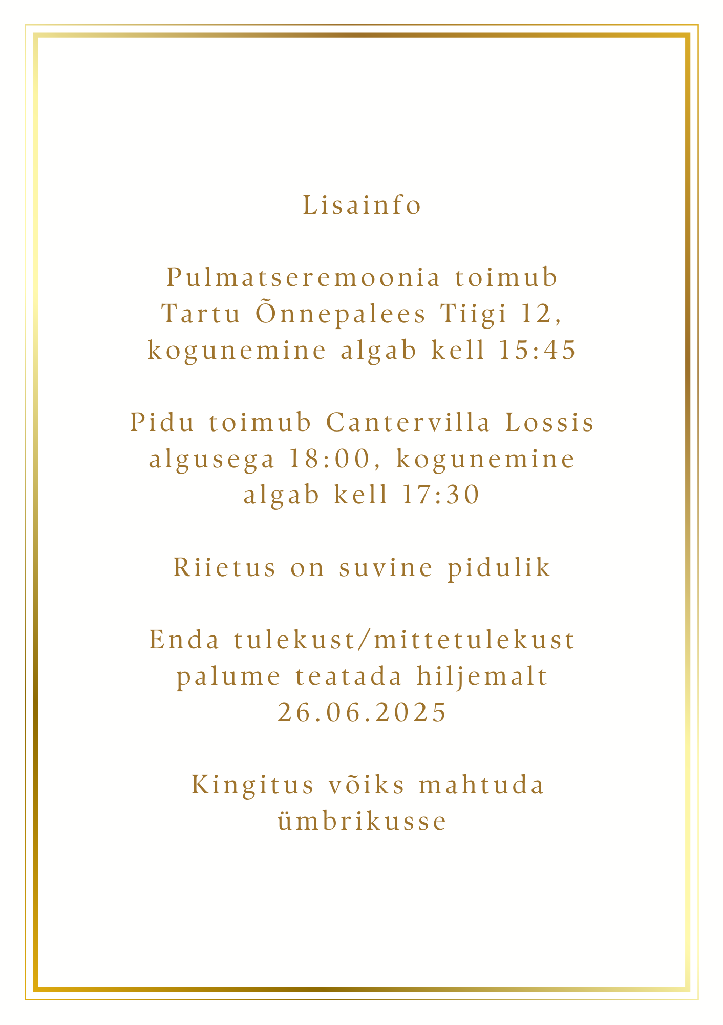 Iga pulmakutse valmib personaalselt teie jaoks. Lisaks pulmakutsetele on võimalik tellida samas stiilis: