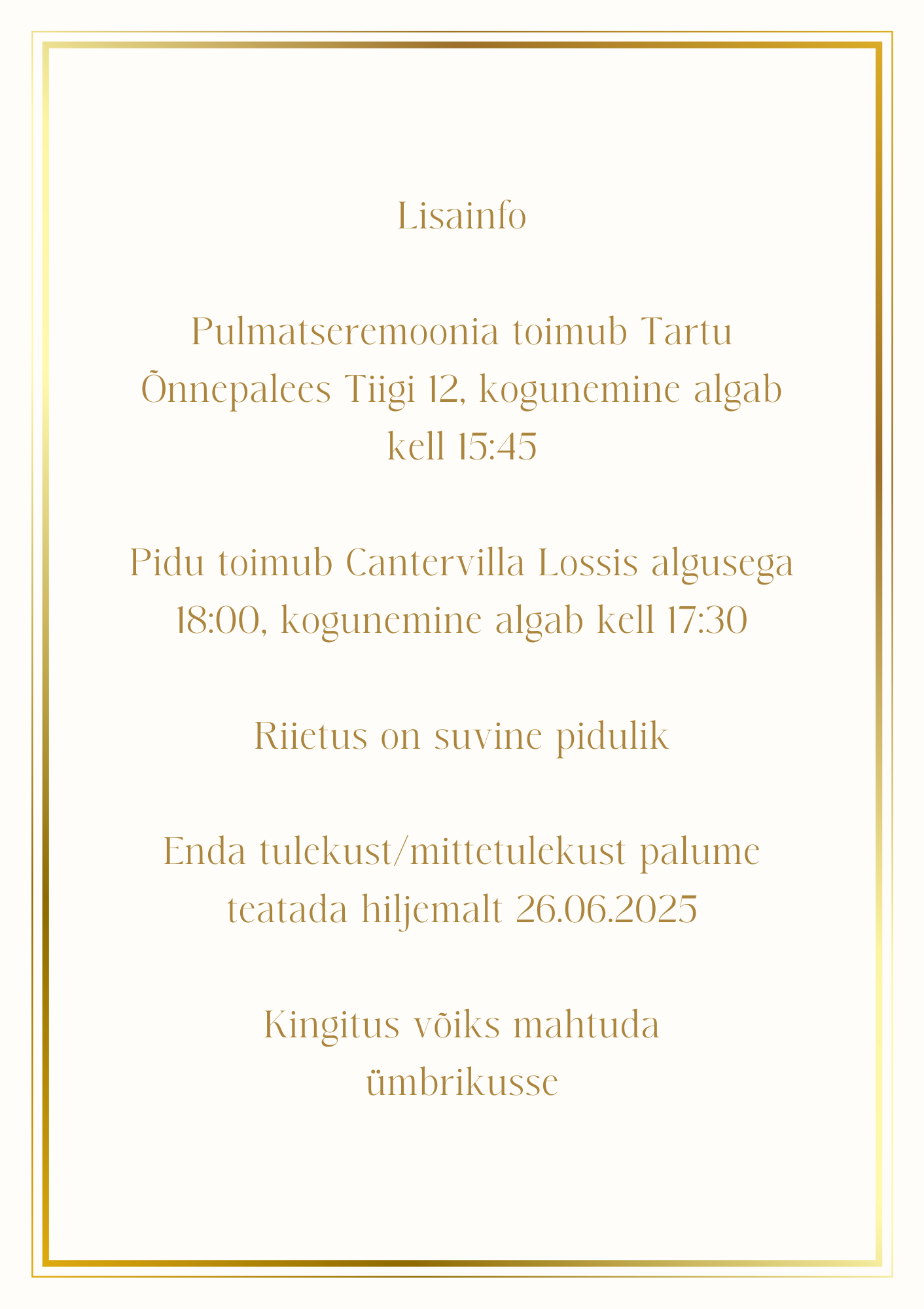Lisaks pulmakutsetele on võimalik tellida samas stiilis: