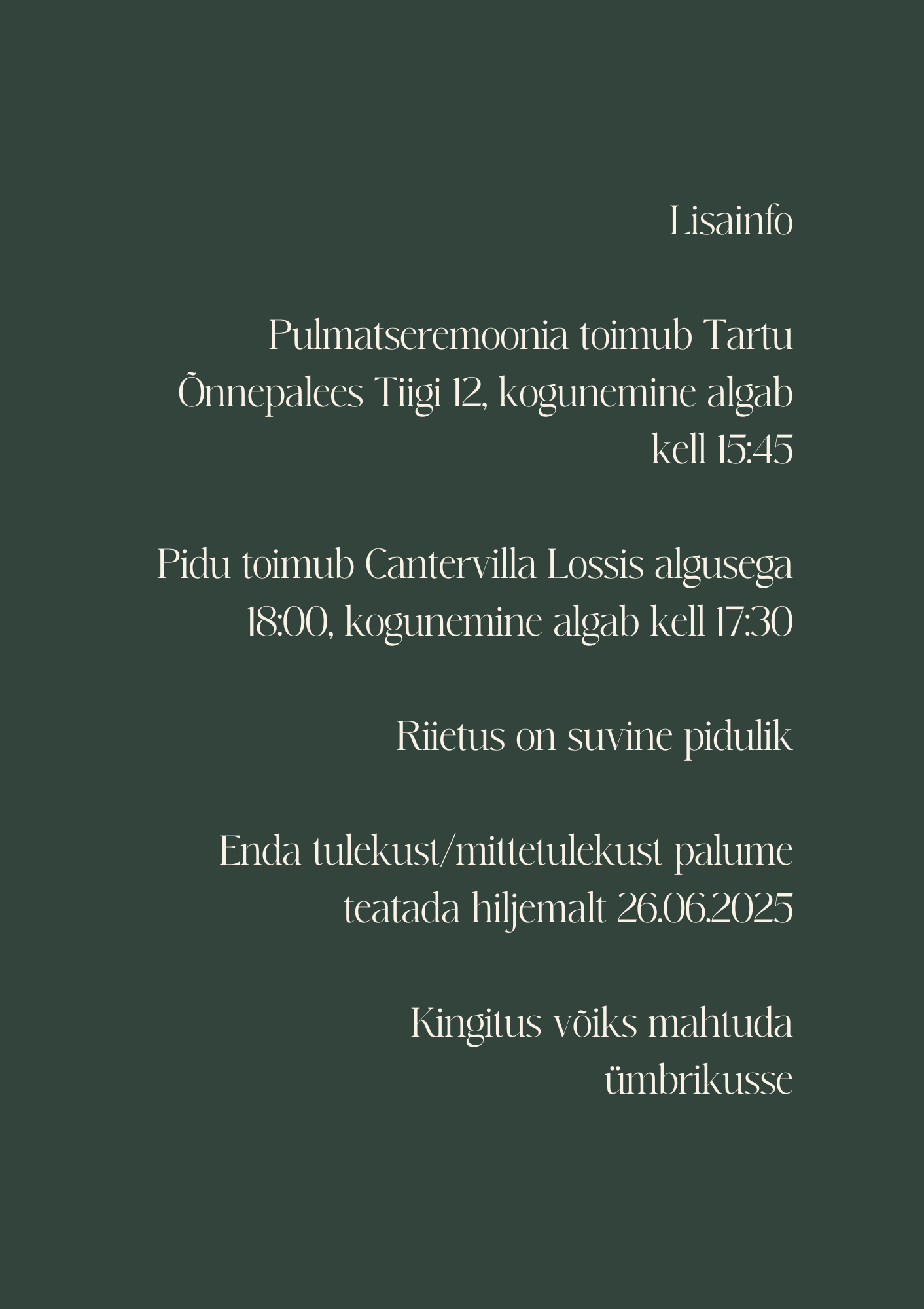 Lisaks pulmakutsetele on võimalik tellida samas stiilis: