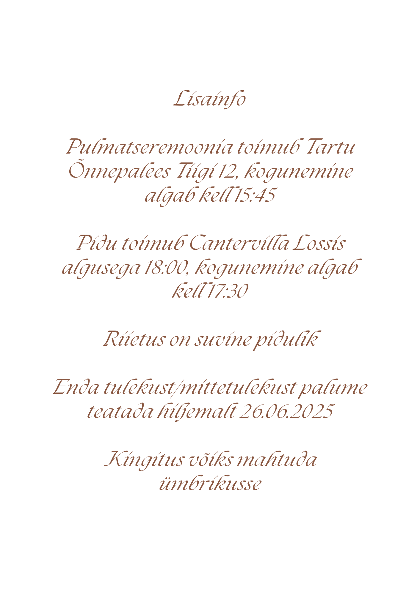 Lisaks pulmakutsetele on võimalik tellida samas stiilis: